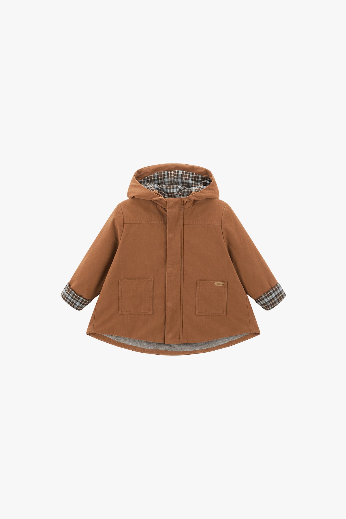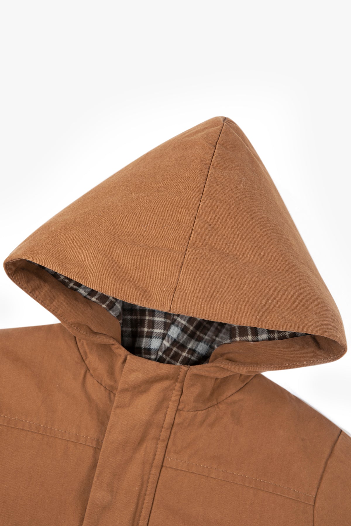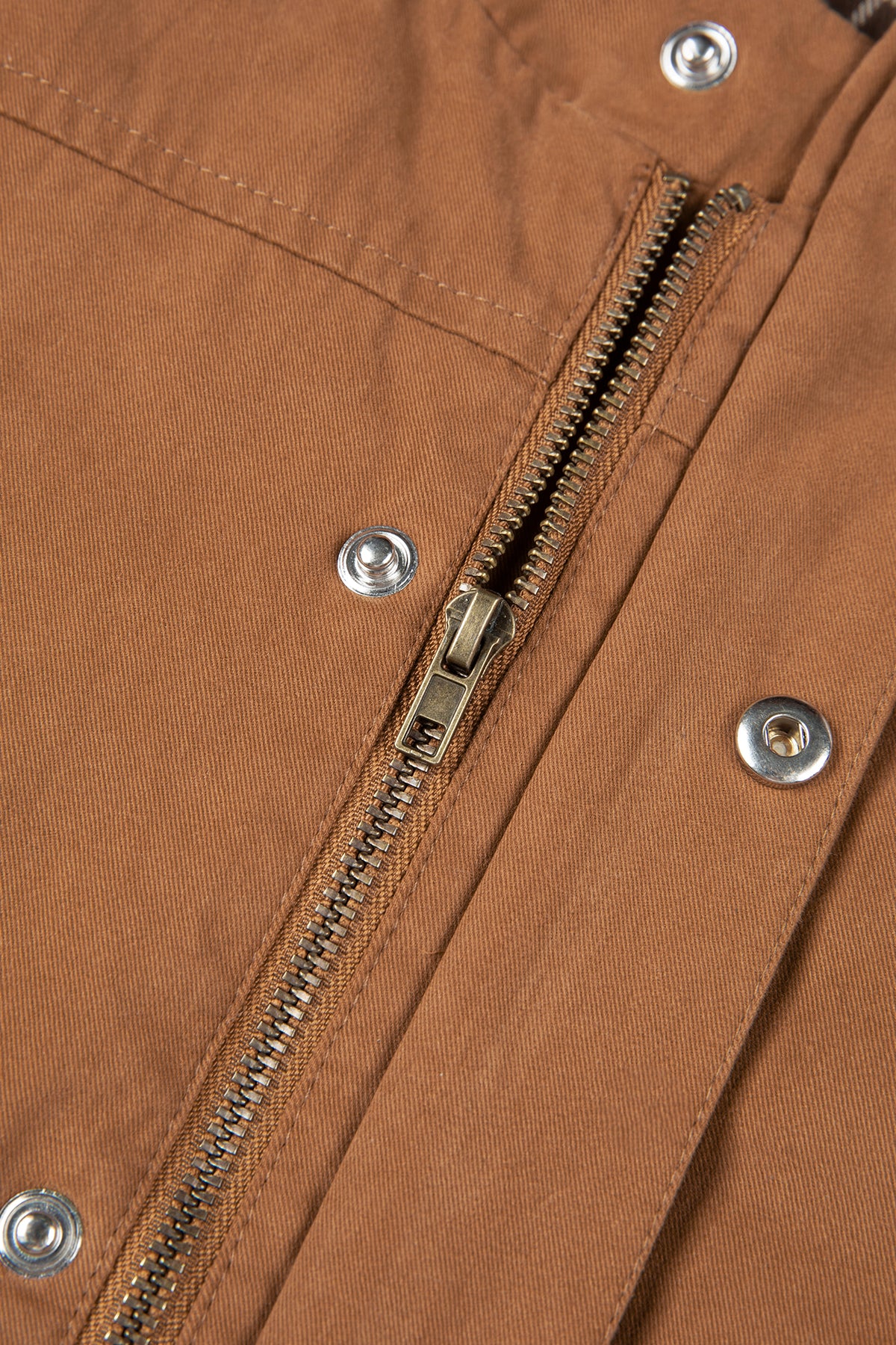 Shell: Brushed cotton twill; Inner layer 1: Cotton yarn-dyed check; Inner layer 2: 100% polyester 240G star jacquard velour