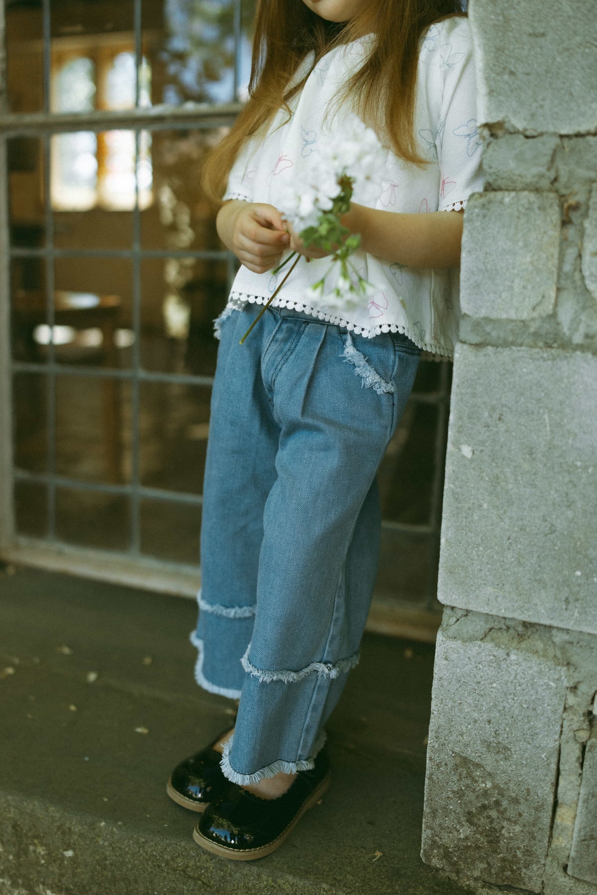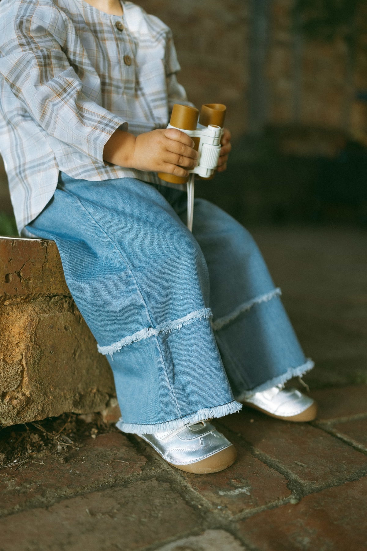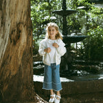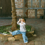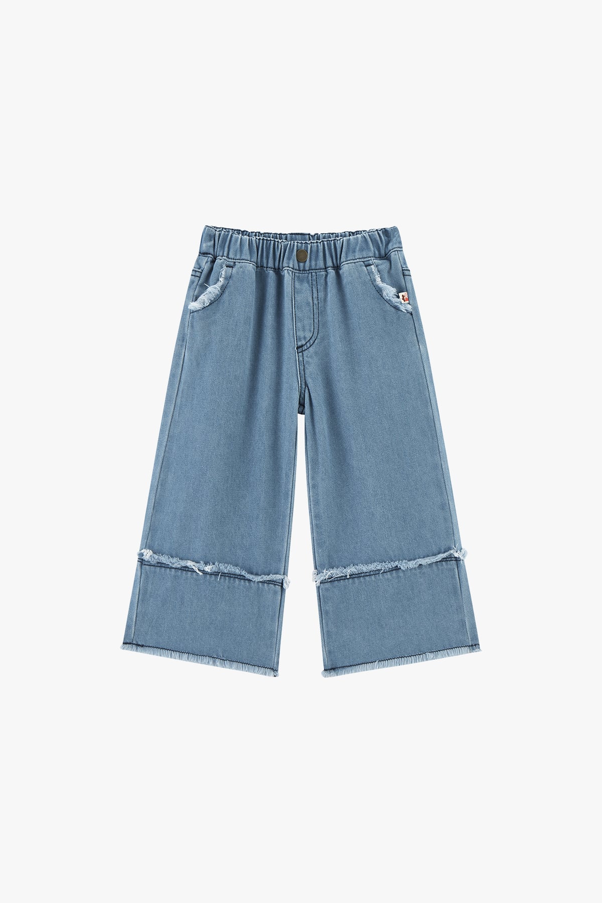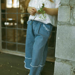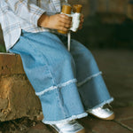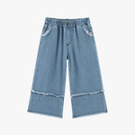 The Cloudy Fray Wide-Leg Jeans in Light Blue bring playful spring adventures to life. Made from a soft cotton blend with recycled fibers, they're gentle on skin, durable, and comfortable for all-day wear. Wide-leg fit, layered frayed edges, and subtle flare details make these girls' jeans perfect for school, play, and casual outings.