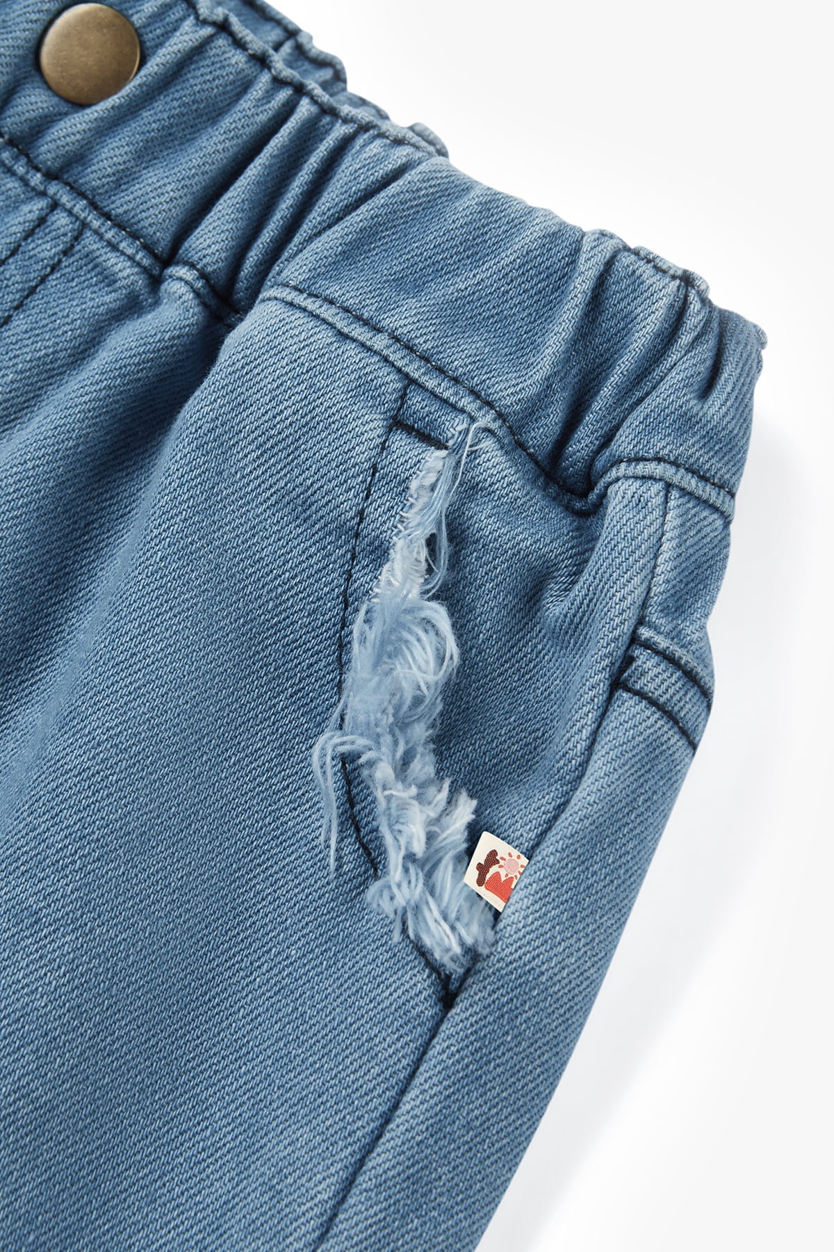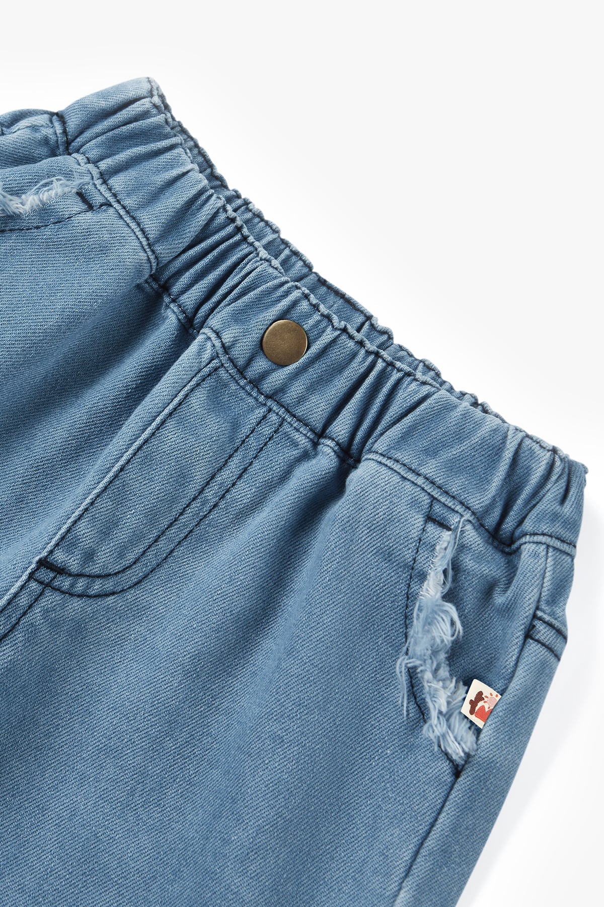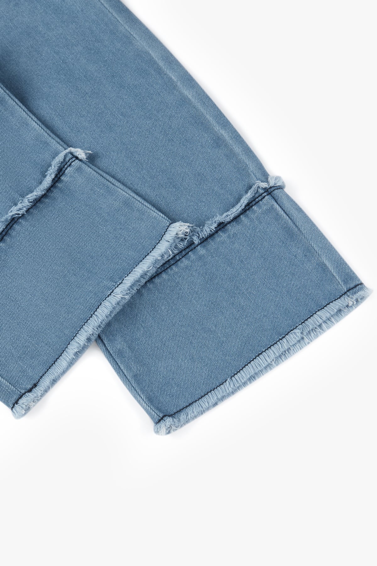 - Layered frayed edges for playful style