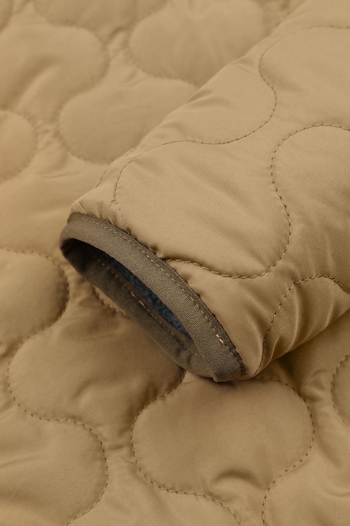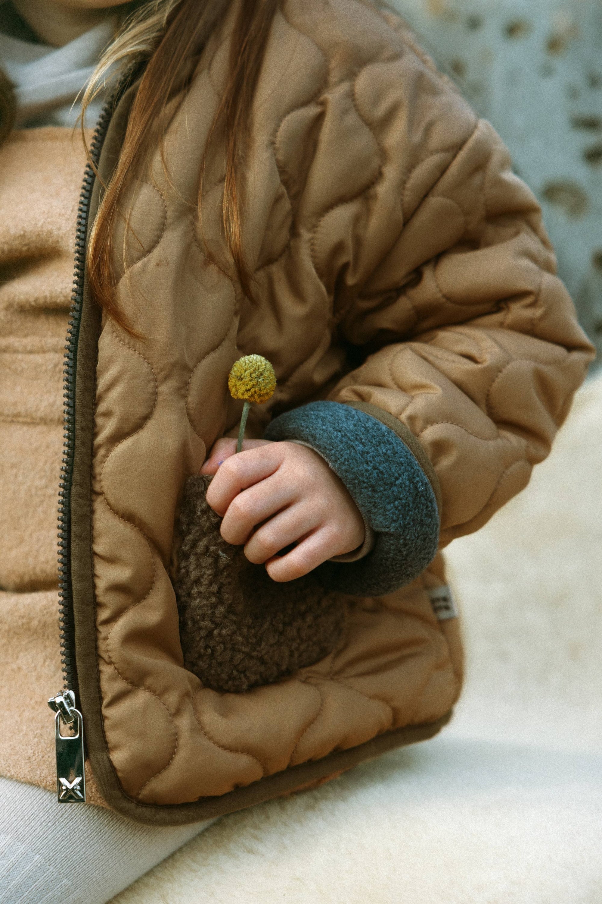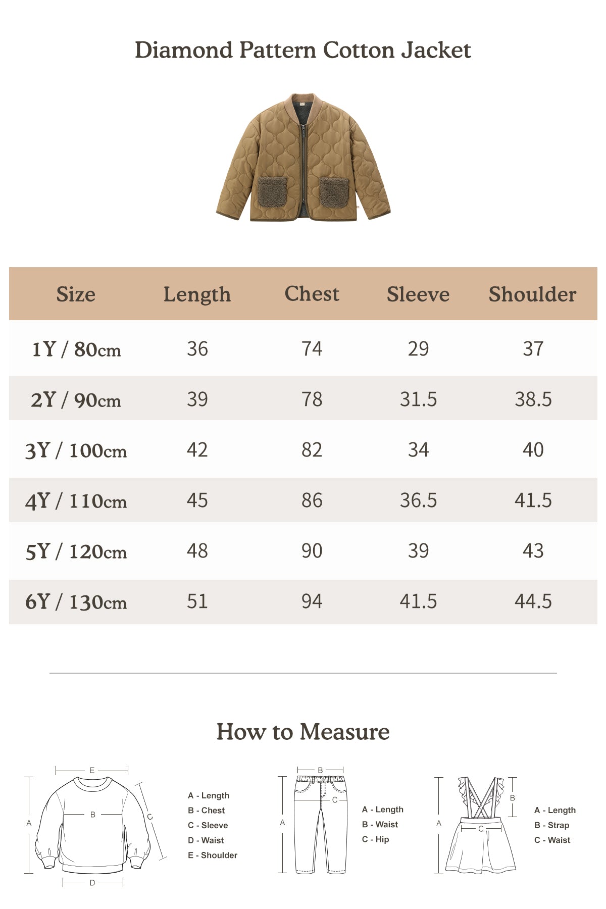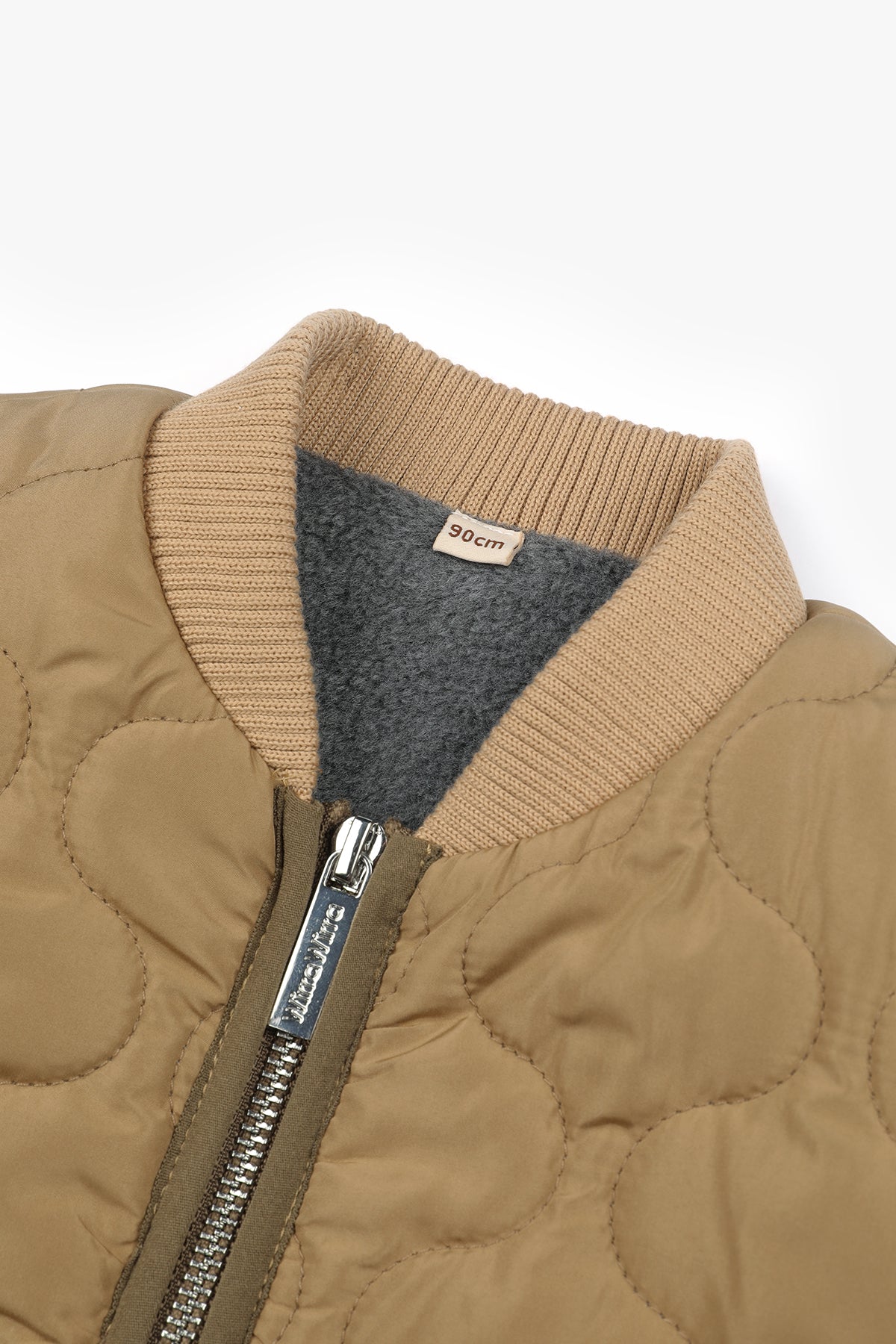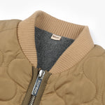 This khaki cotton jacket showcases an elegant diamond pattern design that elevates casual styling. Constructed with a polyester shell, lining, and padding, it delivers superior warmth and weather resistance while maintaining lightweight comfort. The durable polyester composition ensures easy care and long-lasting wear through frequent use. The neutral khaki shade coordinates seamlessly with various pieces, making it an essential layering piece for cooler months. Ideal for school, outdoor activities, or everyday adventures.