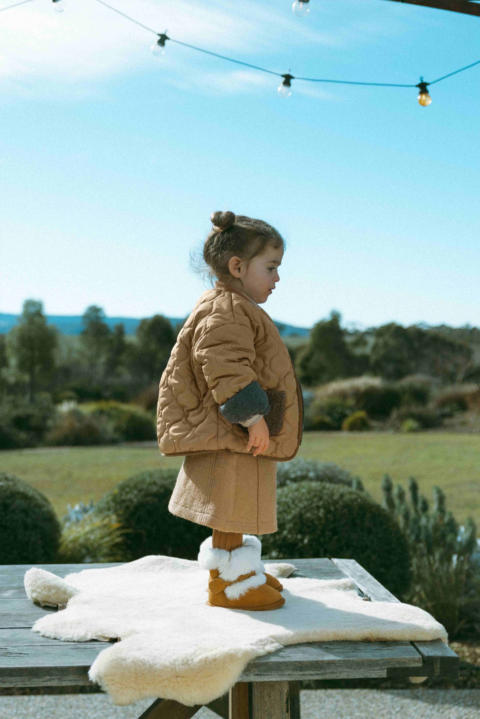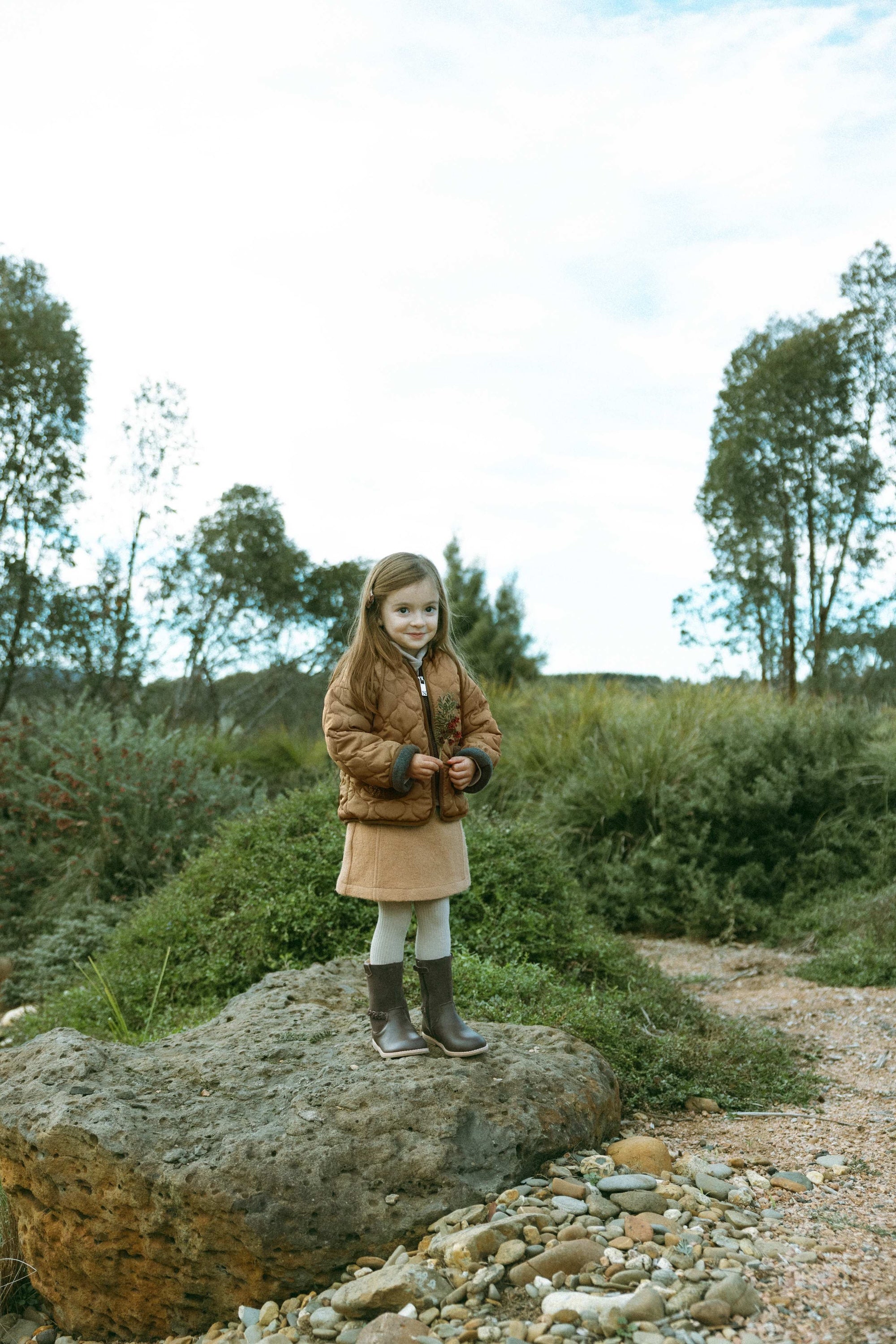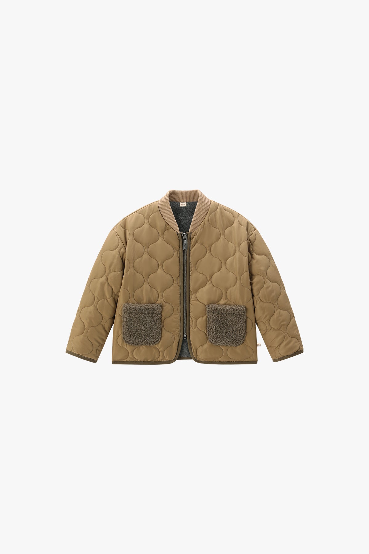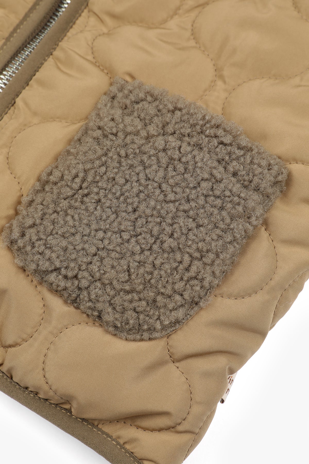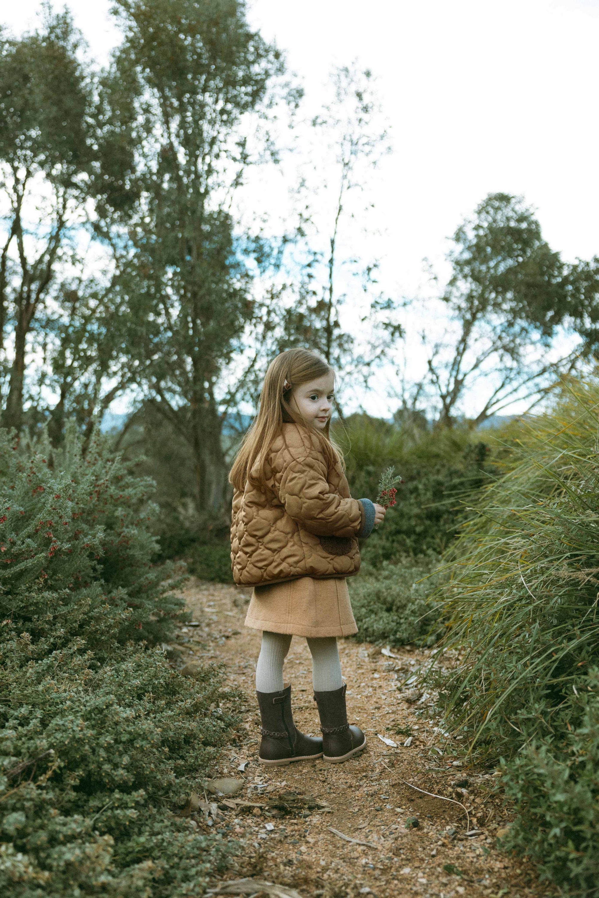 This khaki cotton jacket showcases an elegant diamond pattern design that elevates casual styling. Constructed with a polyester shell, lining, and padding, it delivers superior warmth and weather resistance while maintaining lightweight comfort. The durable polyester composition ensures easy care and long-lasting wear through frequent use. The neutral khaki shade coordinates seamlessly with various pieces, making it an essential layering piece for cooler months. Ideal for school, outdoor activities, or everyday adventures.