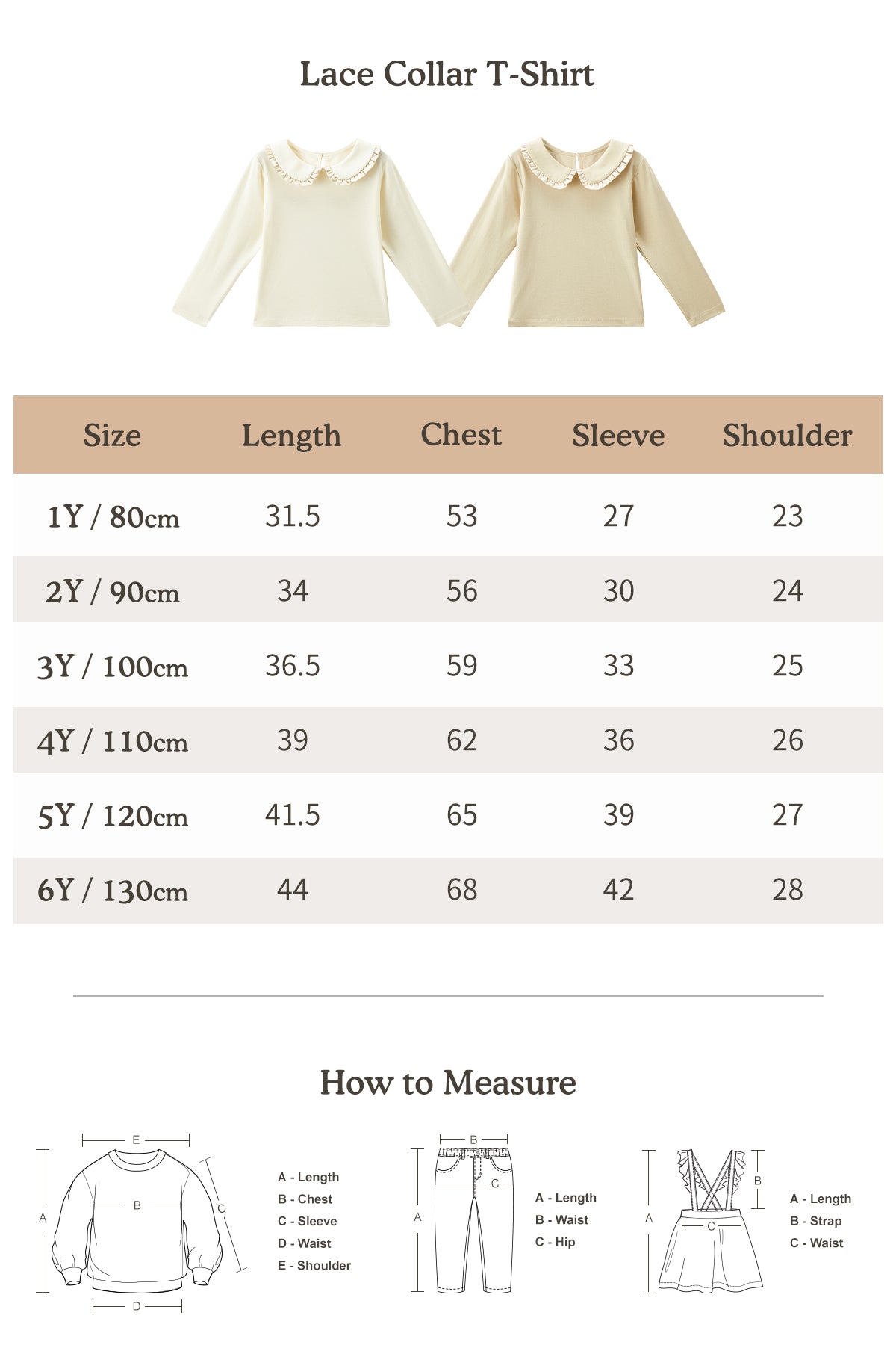 Discover the Lace Collar T-shirt, a delightful addition to your little one's wardrobe. Made from soft and breathable materials, this T-shirt ensures comfort and style. Featuring a charming lace collar and a loose fit for easy movement, it's perfect for every adventure. Crafted with care, it's a must-have for your child's everyday wear.