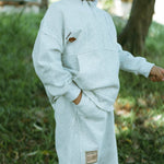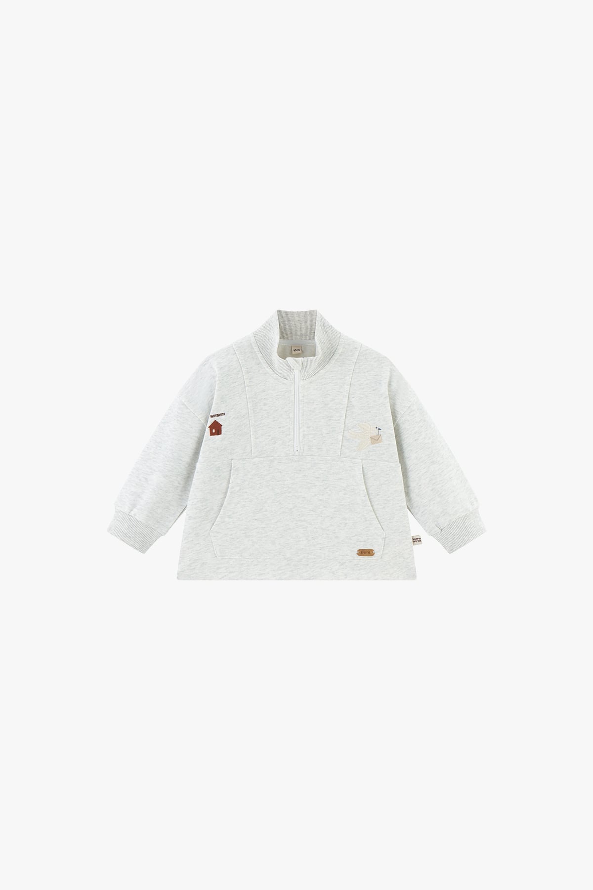 The Little Postie Pocket Sweatshirt in Heather Grey combines cozy comfort with playful adventure. Made from a soft cotton-poly blend, it's breathable, skin-friendly, and durable for everyday wear. With a half-zip collar, fun embroidery, and roomy pocket, this girls' sweatshirt encourages freedom of movement and endless outdoor fun.