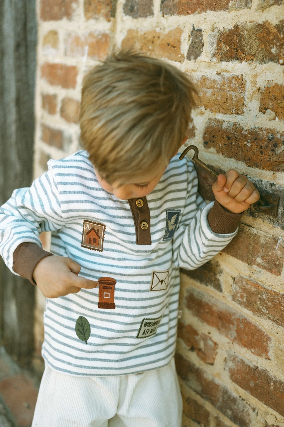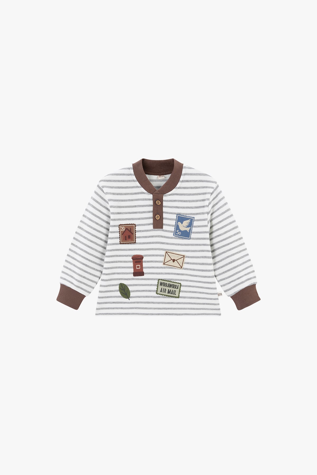 The Postal Magic Retro Sweatshirt in Chocolate captures vintage charm with a playful twist. Made from soft cotton with a touch of stretch, it feels gentle, breathable, and cozy for everyday wear. Retro-inspired details and a classic Henley neckline make this girls' sweatshirt perfect for spring outings, school days, and casual layering.