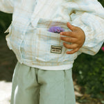 The Pudding Plaid Hooded Jacket brings cozy spring warmth in a fresh plaid design. Made from double-layer 100% cotton, it's soft, breathable, and gentle on skin. Adjustable drawstrings, roomy pockets, and a relaxed hooded fit make this girls' jacket perfect for outdoor play, school, and early spring adventures.