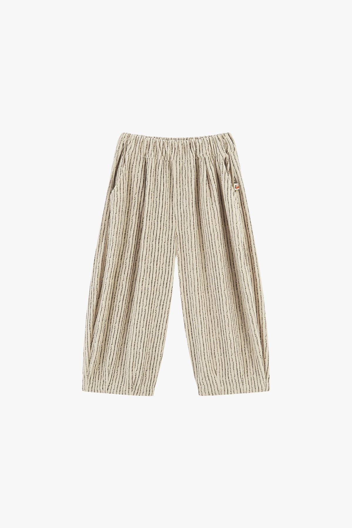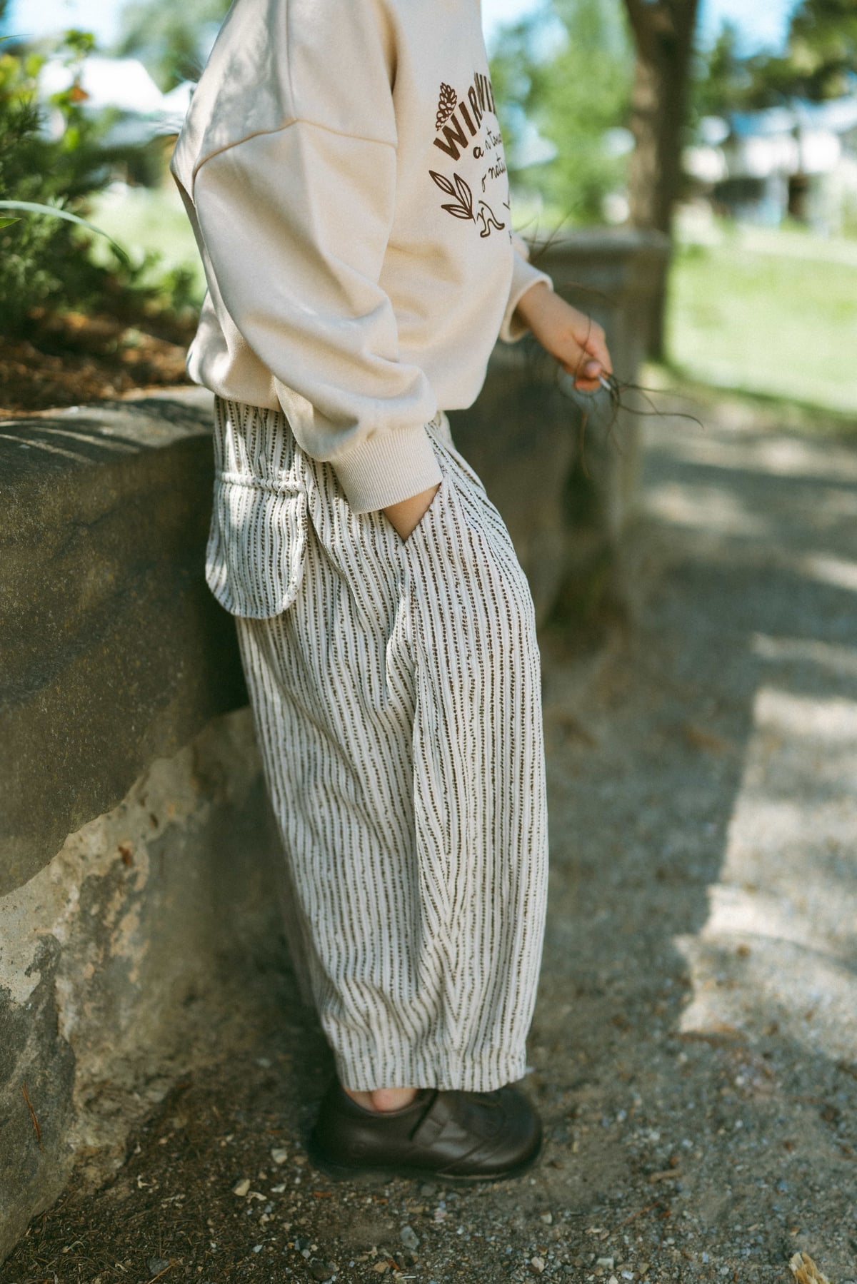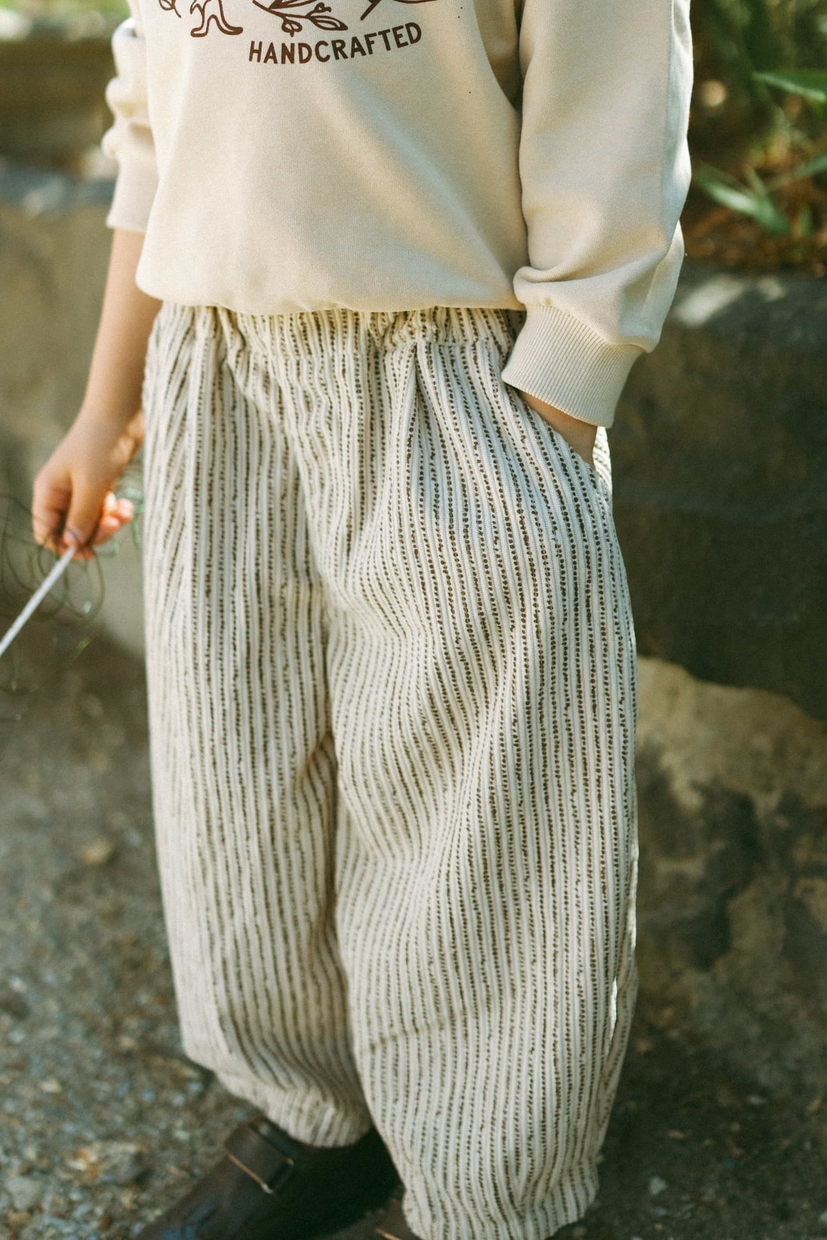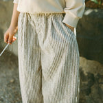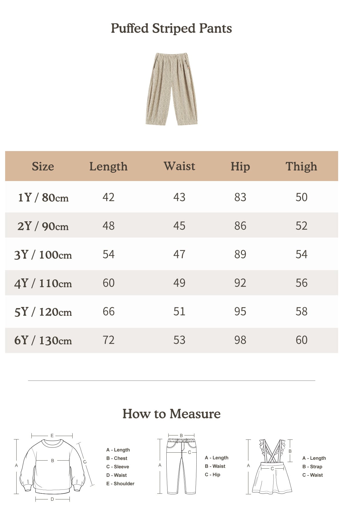 The Puffed Striped Pants bring playful spring energy to every adventure. Made from lightweight, durable polyester corduroy, they're soft, breathable, and quick-drying for all-day comfort. Balloon-style legs, roomy pockets, and neat elastic cuffs make these girls' pants perfect for active play, school, and casual outings.