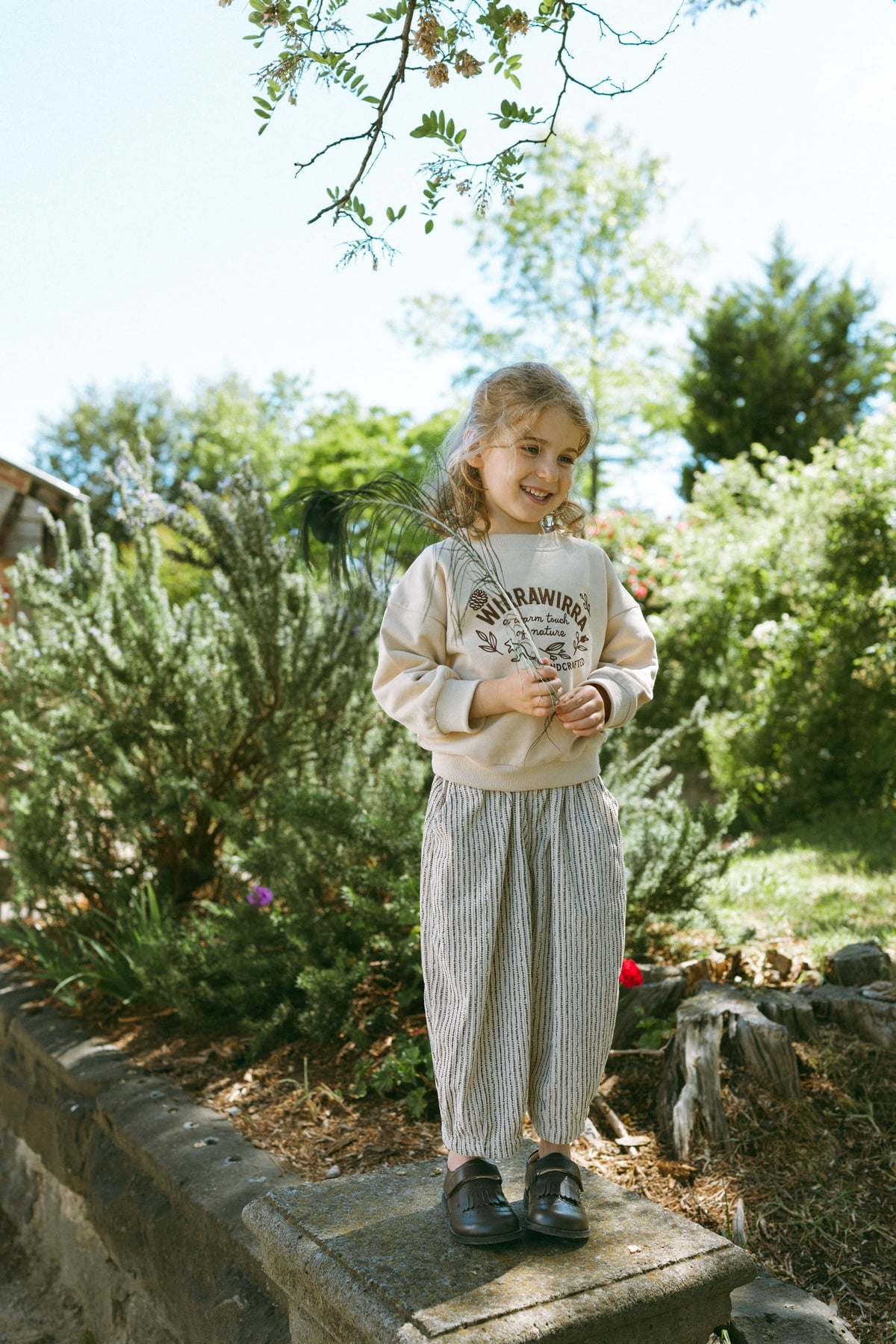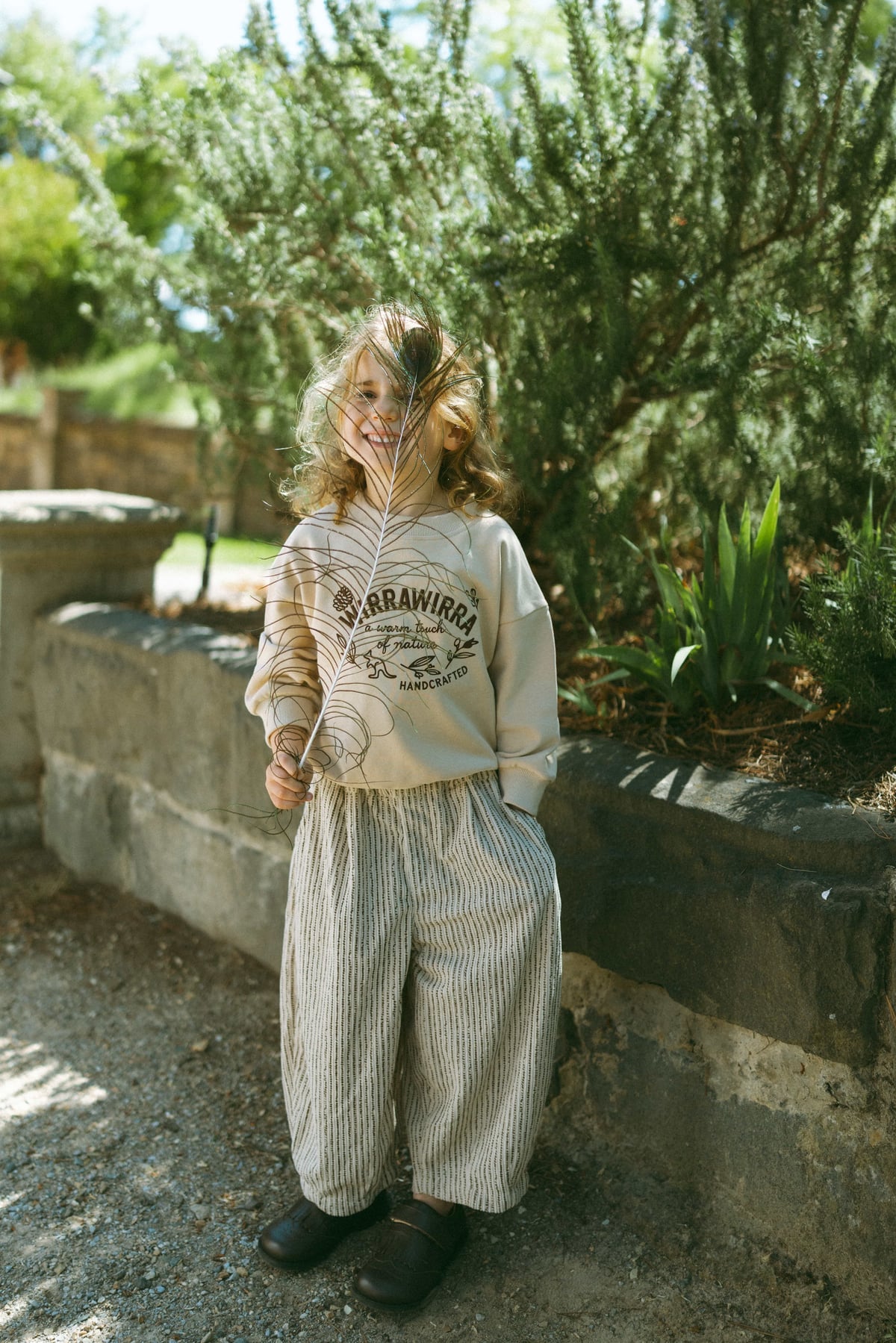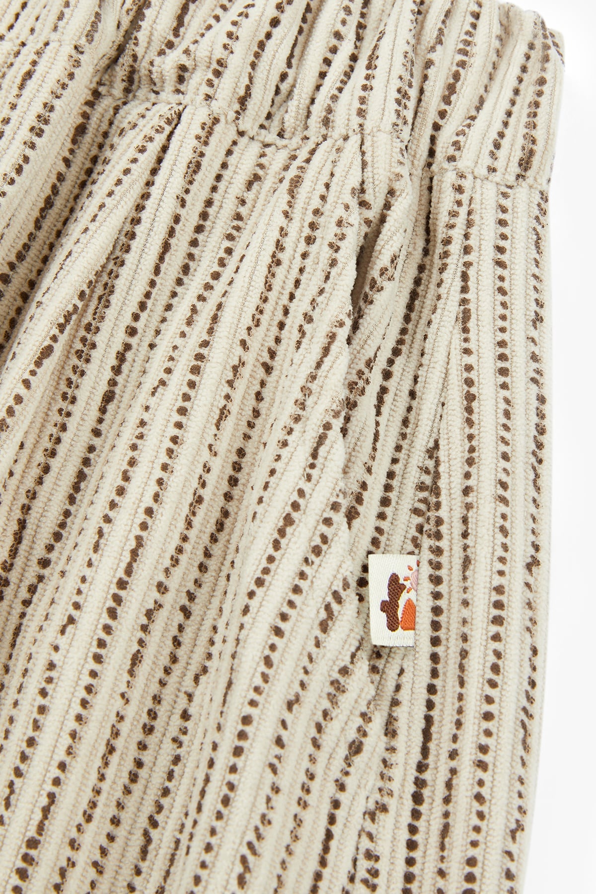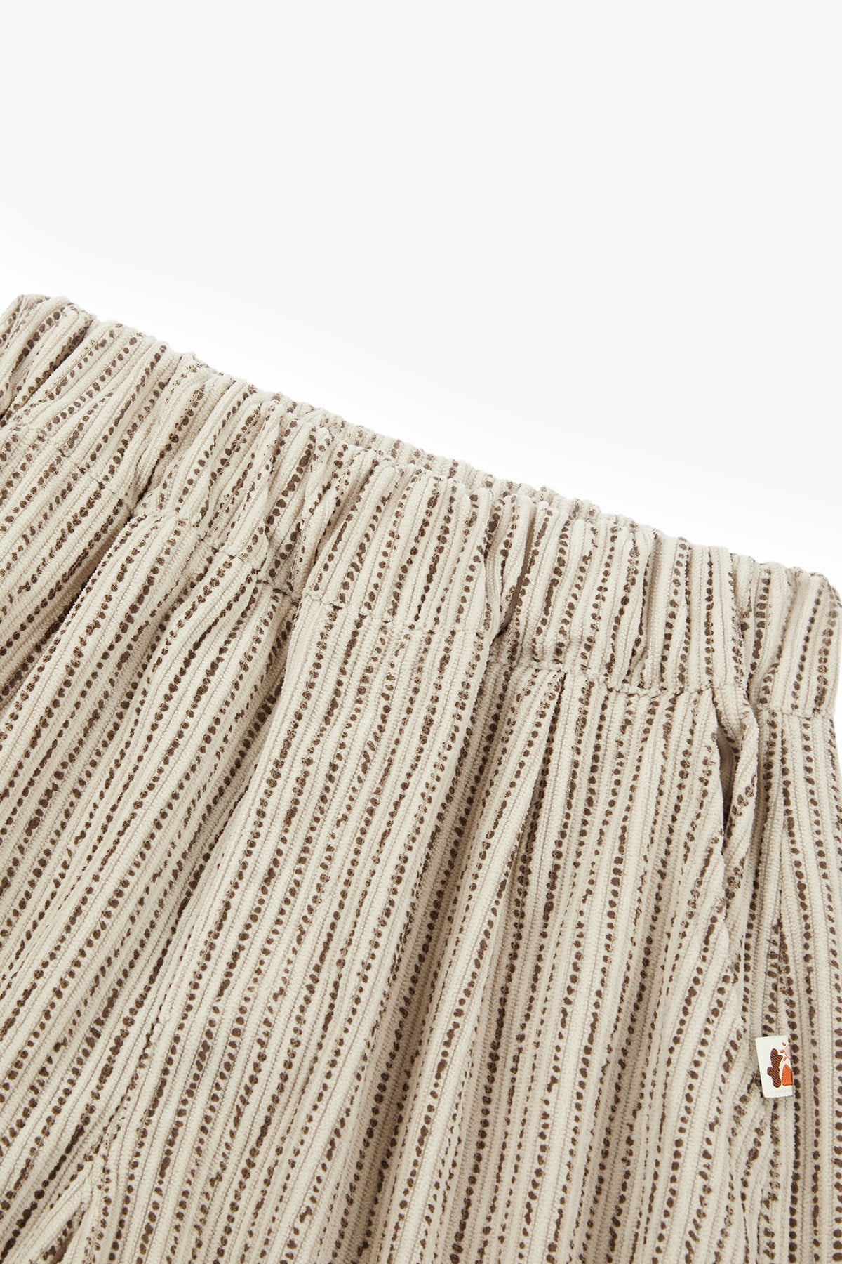 The Puffed Striped Pants bring playful spring energy to every adventure. Made from lightweight, durable polyester corduroy, they're soft, breathable, and quick-drying for all-day comfort. Balloon-style legs, roomy pockets, and neat elastic cuffs make these girls' pants perfect for active play, school, and casual outings.
