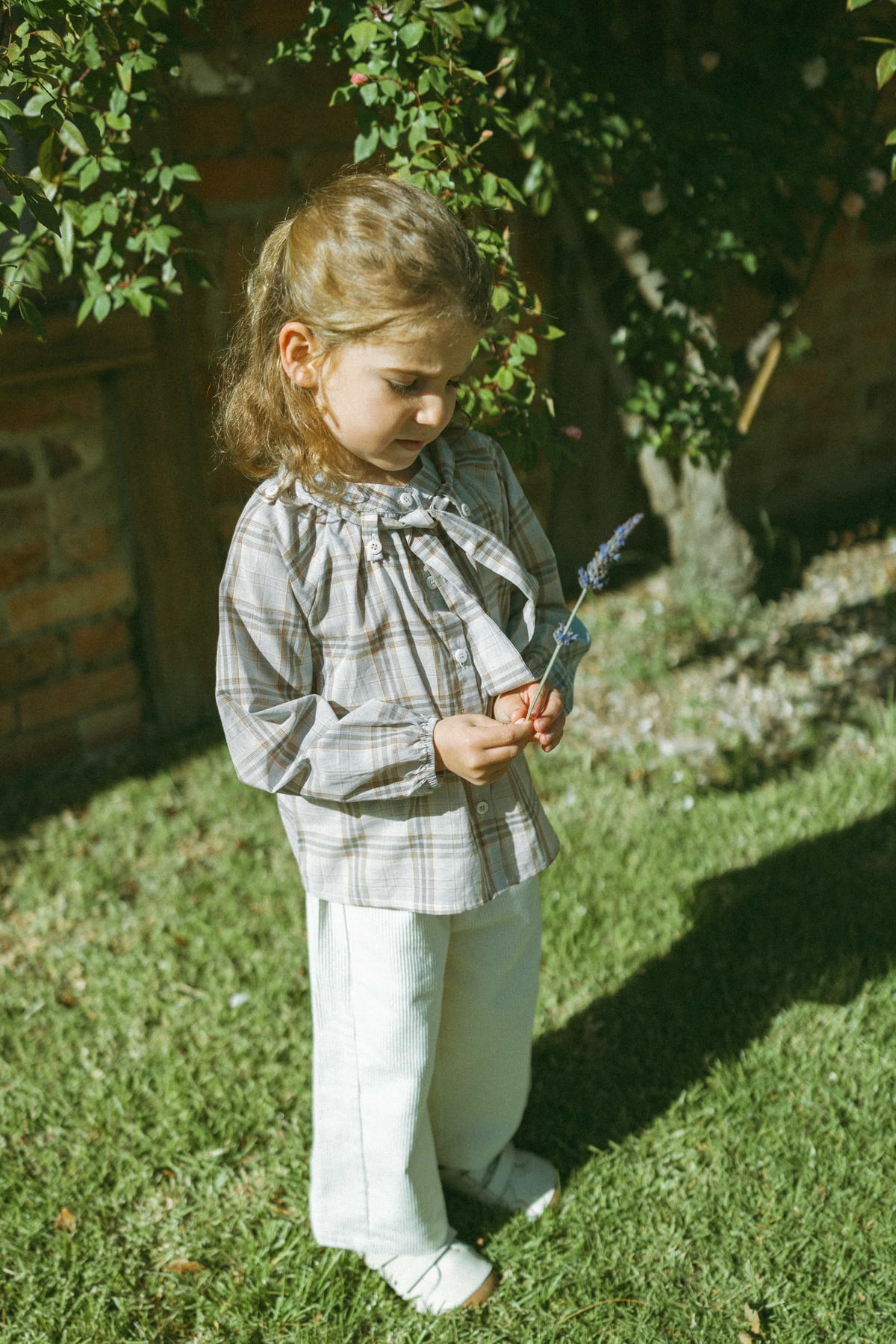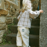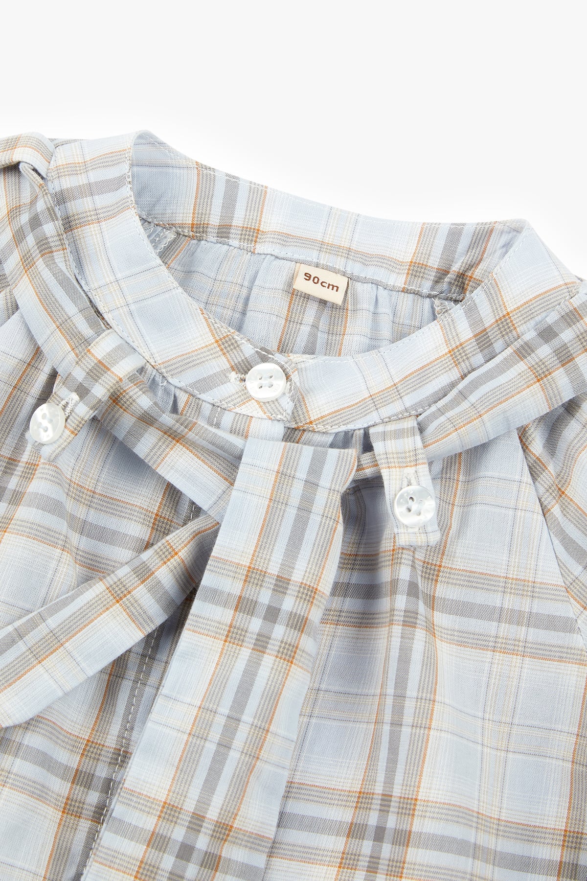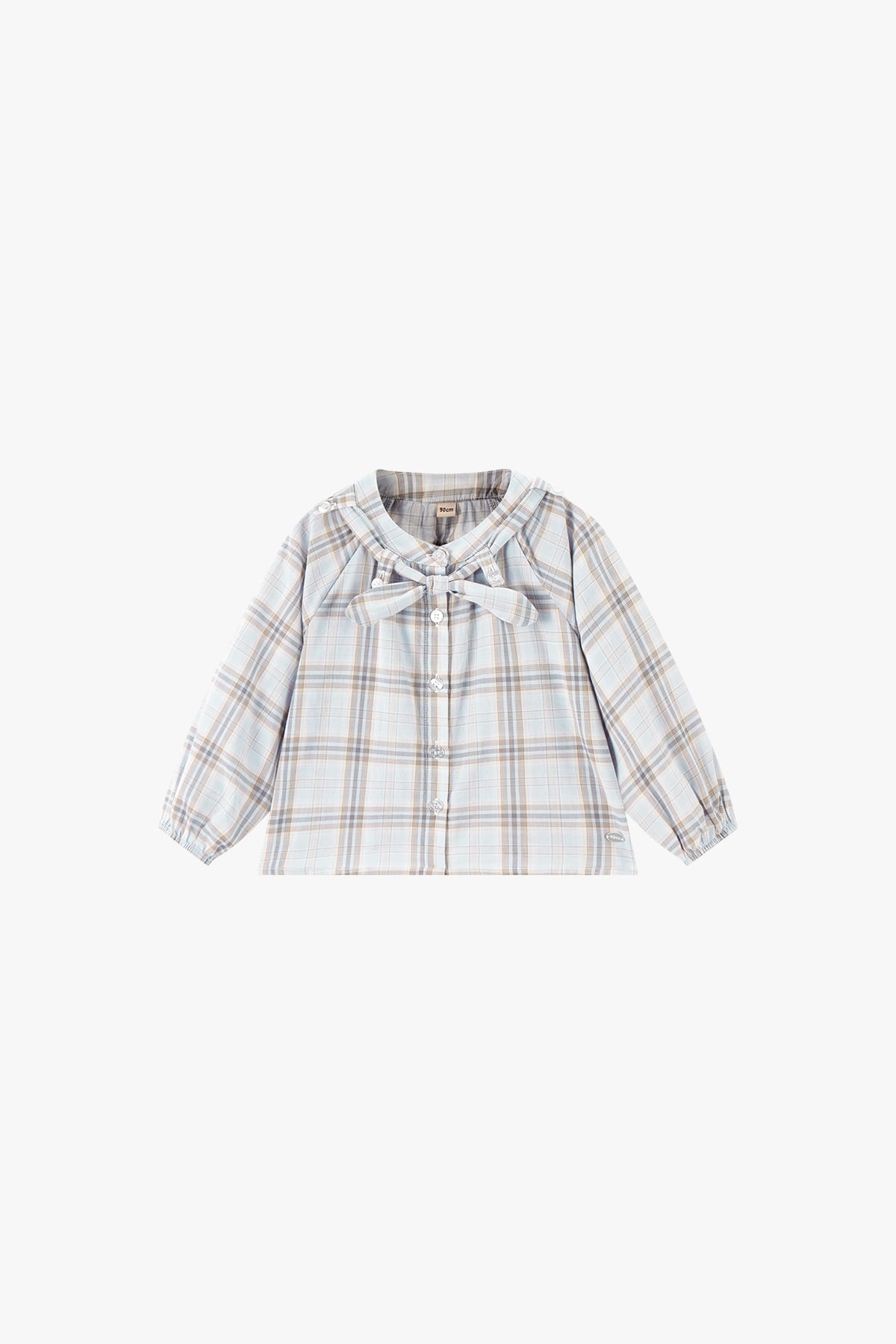 The School Diary Plaid Bow Blouse in Grey-Blue Plaid blends classic school charm with playful elegance. Made from 100% cotton, it's soft, breathable, and gentle on skin. The vintage plaid pattern and detachable bow add a sweet, refined touch, making this girls' cotton blouse perfect for school days, outings, and spring layering.