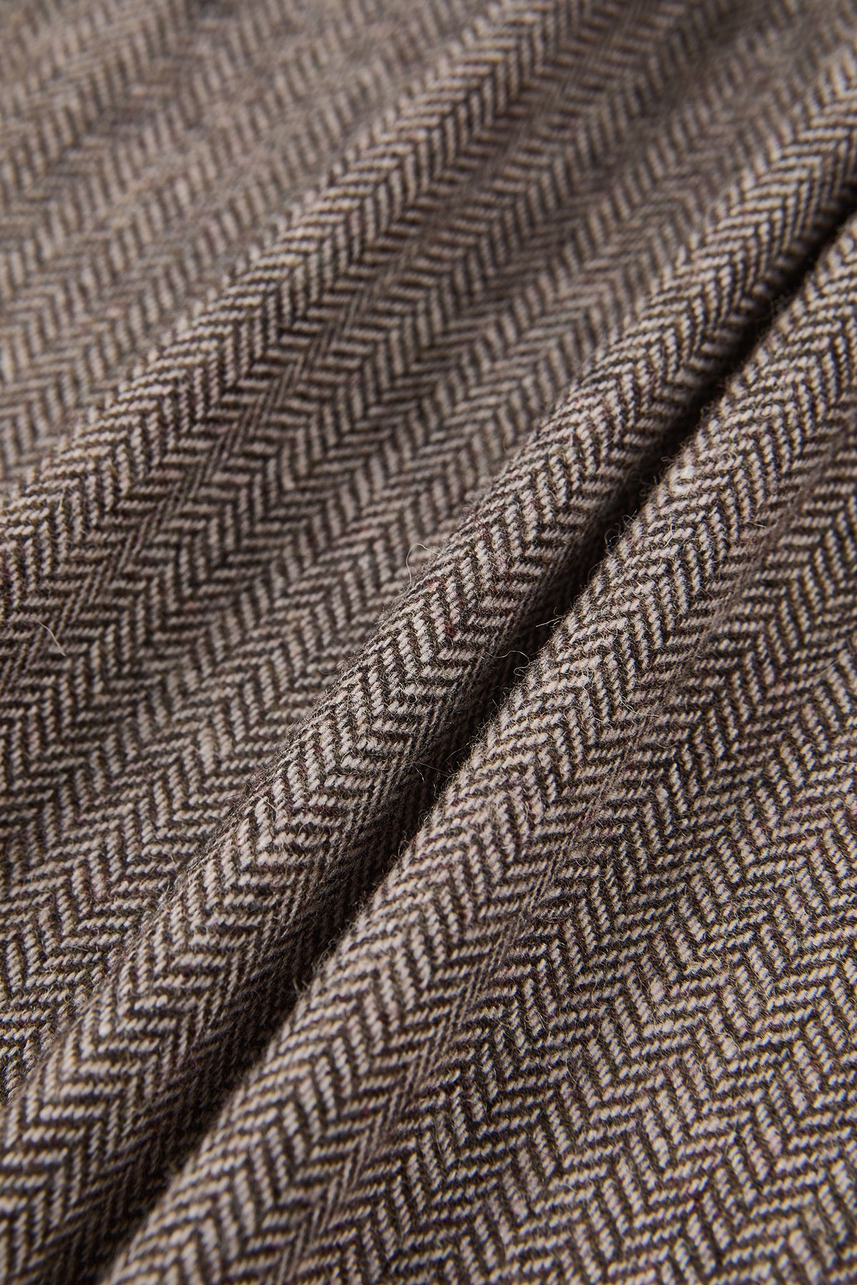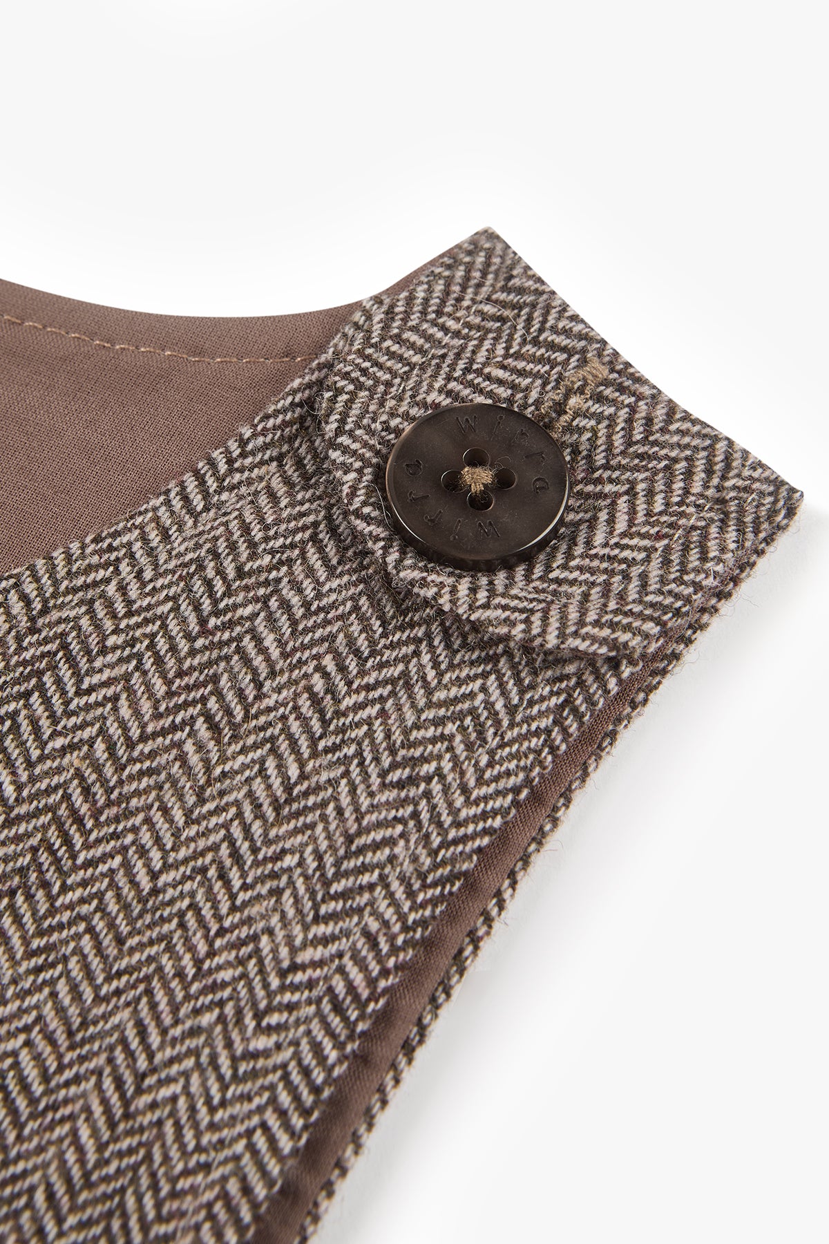 Shell: Herringbone wool blend, 50% wool, 50% polyester; Lining: 100% cotton poplin