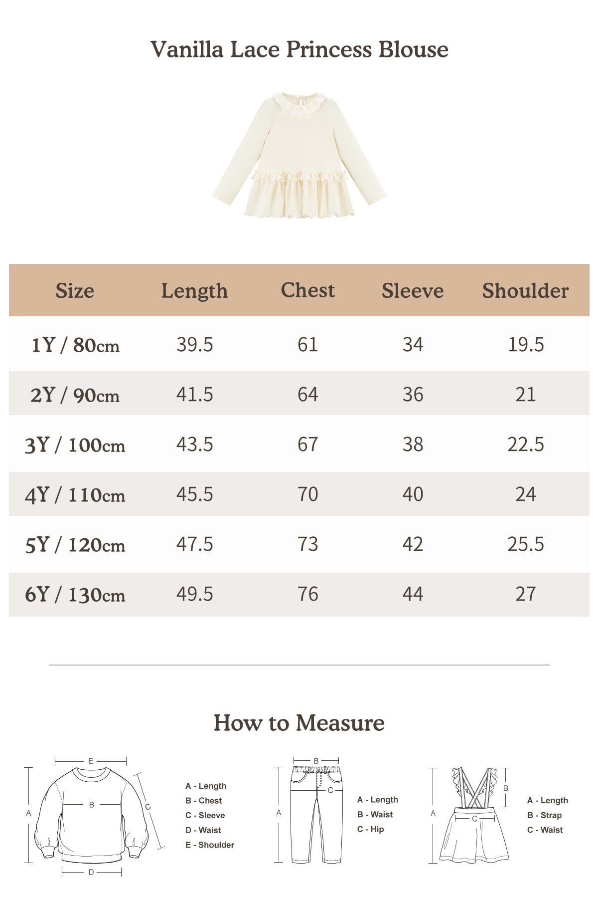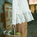 The Vanilla Lace Princess Blouse in Beige brings soft spring romance to everyday wear. Crafted from high-cotton stretch fabric, it feels gentle, breathable, and comfortably flexible. Delicate lace trims and a sweet doll-style silhouette create a lightweight, elegant look that's perfect for girls who love a feminine, vintage-inspired blouse for daily outfits or special moments.