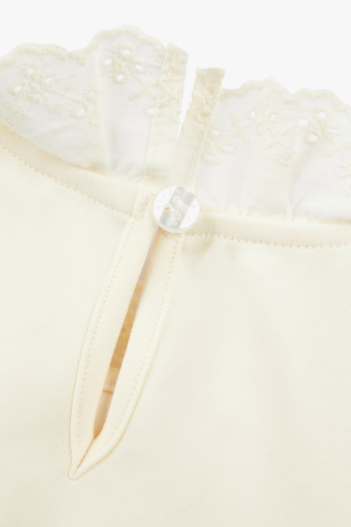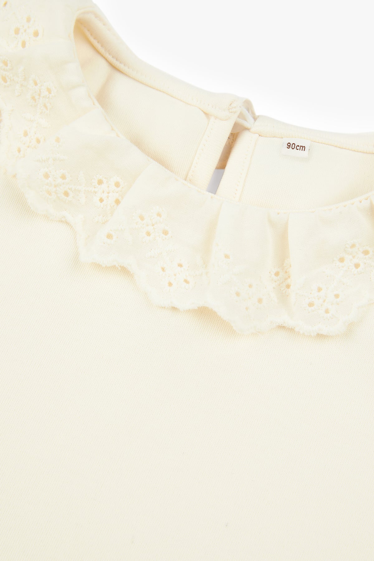 - Delicate lace collar with elegant detailing